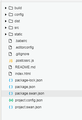 我们写的源代码在src文件夹下,dist文件夹存放的是生成代码。dist文件夹下的代码跟微信小程序的原生代码是一致的,如下图