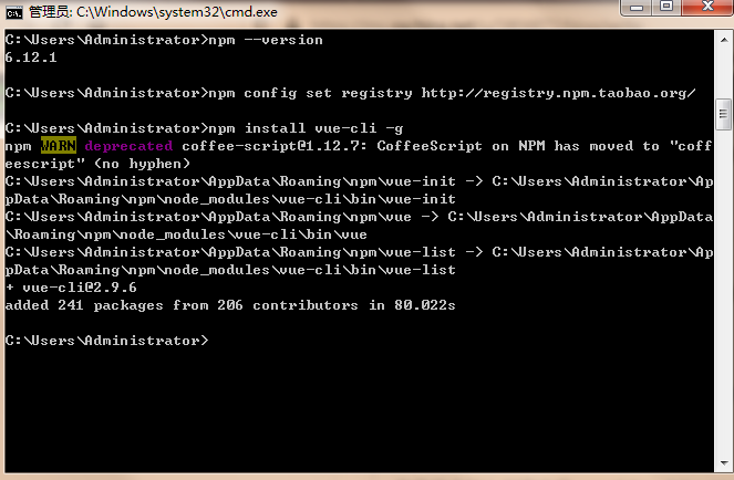 1.输入以下指令 npm install vue-cli -g,-g是全局global的意思