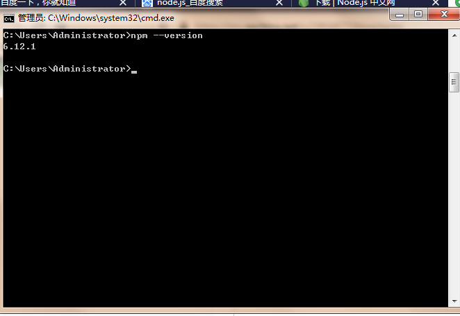 3.完成后,在命令行输入npm --version,如下图所示,显示出版本号,那么我们的第一步node.js就按照完成了