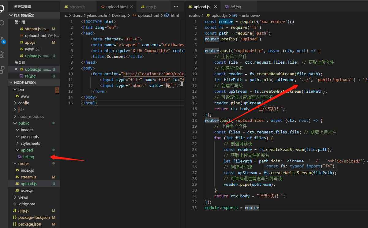 获取到文件之后,通过fs将文件保存到服务器的指定目录