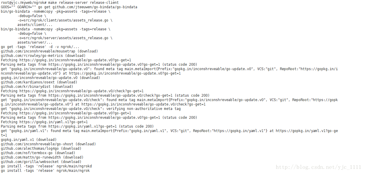 正常执行后,ngrok/bin 目录下应该有 ngrok、ngrokd 两个可执行文件。