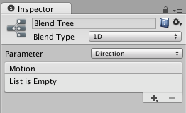 Inspector中的第一个选项就是 Blend Type. 按照需要的blend 参数来分,分为1D和2D,1D就是需要一个混合参数
