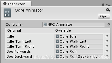Animator Override Controller 就是复制一份Animator Controller,这样就可以用同一种结构,比如你的游戏可能有各种各样的NPC类型,但每种类型(地精、食人魔、精灵等)都有自己独特的动画,用于行走、闲荡、坐着等。它们动画的结构都是一样的,比如先行走,在坐下,但是动画片段不一样,这样就可以为每个怪物创建一个Animator Override Controller,使用相同的动画结构,但是动画片段不一样
