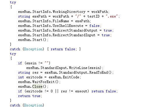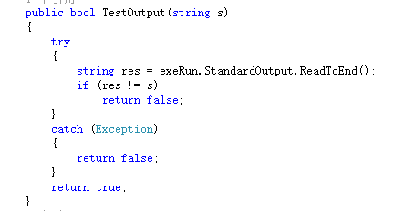 最后通过public bool RunTest(string exein,string exeout)进行判断