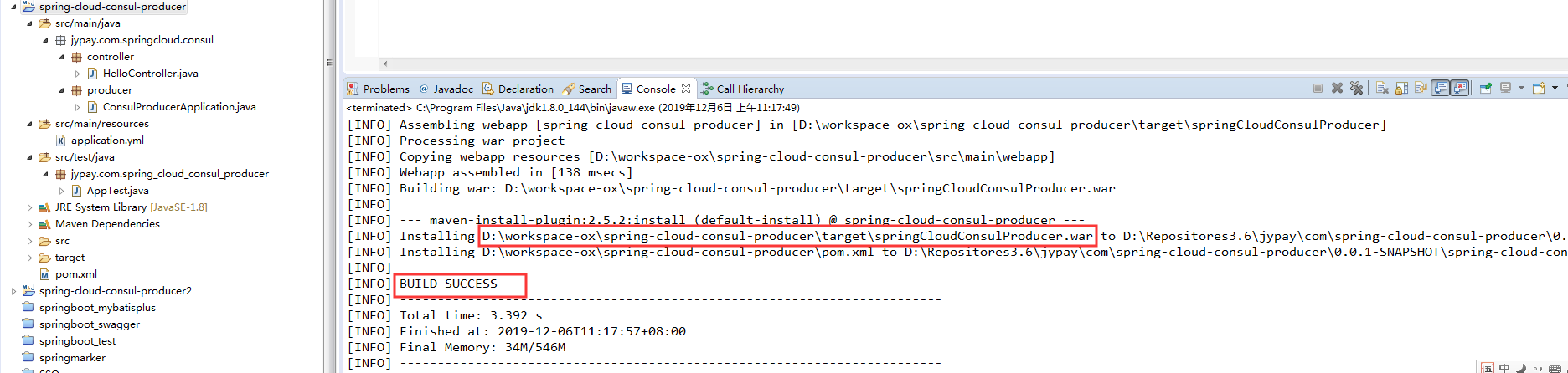1)、ConsulProducerApplication.java中没有把SpringCloud的服务注册到Consul,没有用@ComponentScan({"jypay.com.springcloud.consul.controller","jypay.com.springcloud.consul.util"});