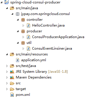 2.1、新建项目 spring-cloud-consul-producer,项目结构如下: