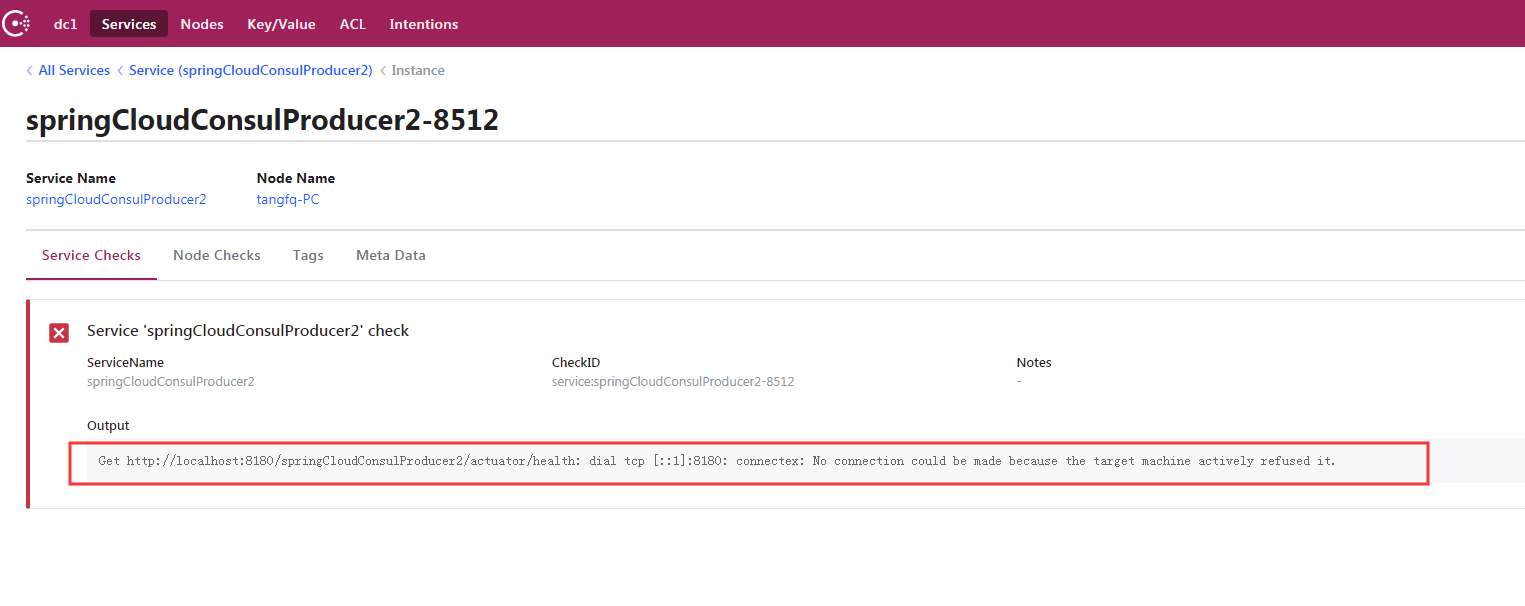 则证明在yml文件配置的地址参数是正确的。反之,你的项目中检测服务提供者的地址不对,Consul会有如下错误: