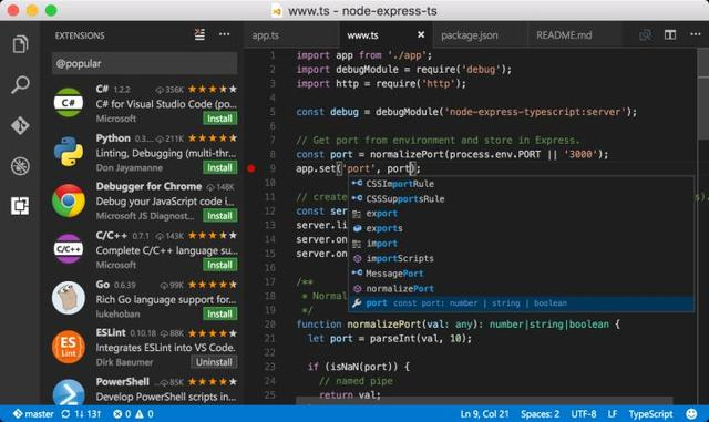 Visual Studio Code (简称 VS Code / VSC) 是一款免费开源的现代化轻量级代码编辑器,支持几乎所有主流的开发语言的语法高亮、智能代码补全、自定义热键、括号匹配、代码片段、代码对比 Diff、GIT 等特性,支持插件扩展,并针对网页开发和云端应用开发做了优化。软件跨平台支持 Win、Mac 以及 Linux。这个软件太漂亮了,我忍不住要放一张图。