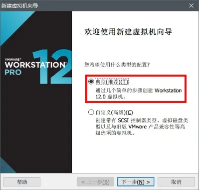 打开 VMware,选择「创建新的虚拟机」,进入「新建虚拟机向导」;