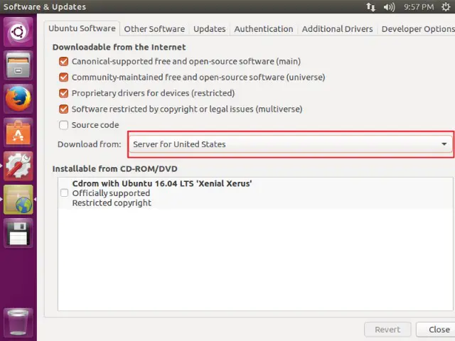 先更改系统的更新服务器,选择国内的服务器网速更好一些。