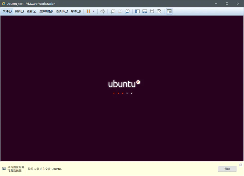 虚拟机开机后,会自动进行 Ubuntu 的安装(不需要手动操作)。
