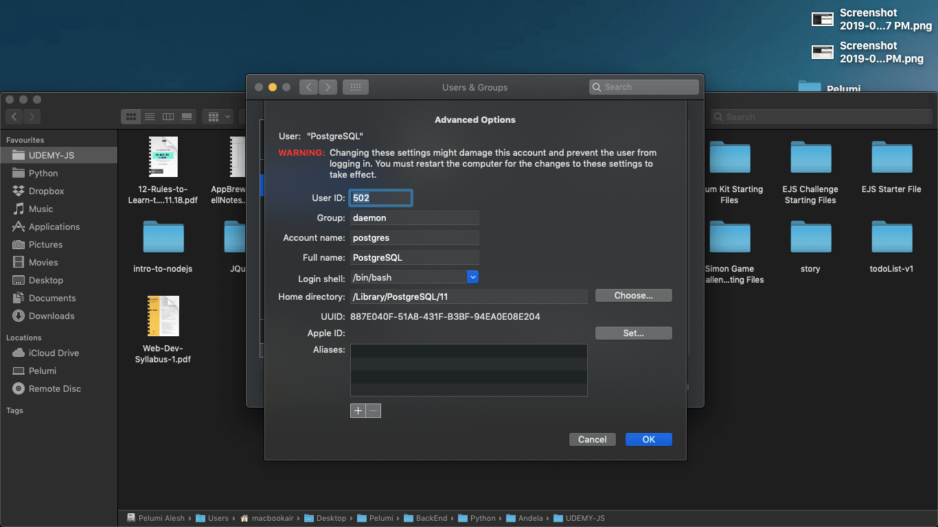 Two days ago, i started learning postgresql. Most tutorials I followed online were either old or the codes wont just work on my mac. I followed a lot of tutorials that did a lot of totally different things. When i switched on my system today. I noticed Postgresql created a user on my mac. I don't know what this is or maybe i used the wrong CLI code.
