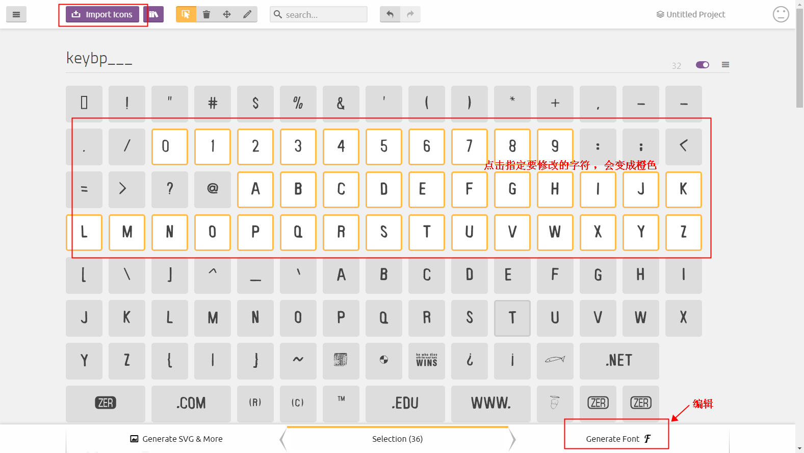 选择左上角 Import Icons 按钮,导入mywebfont.svg