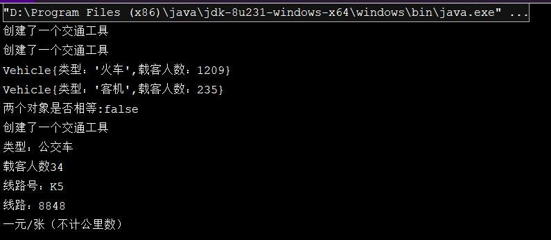 System.out.println("两个对象是否相等:"+v1.equals(v2));//创建一个公交车类