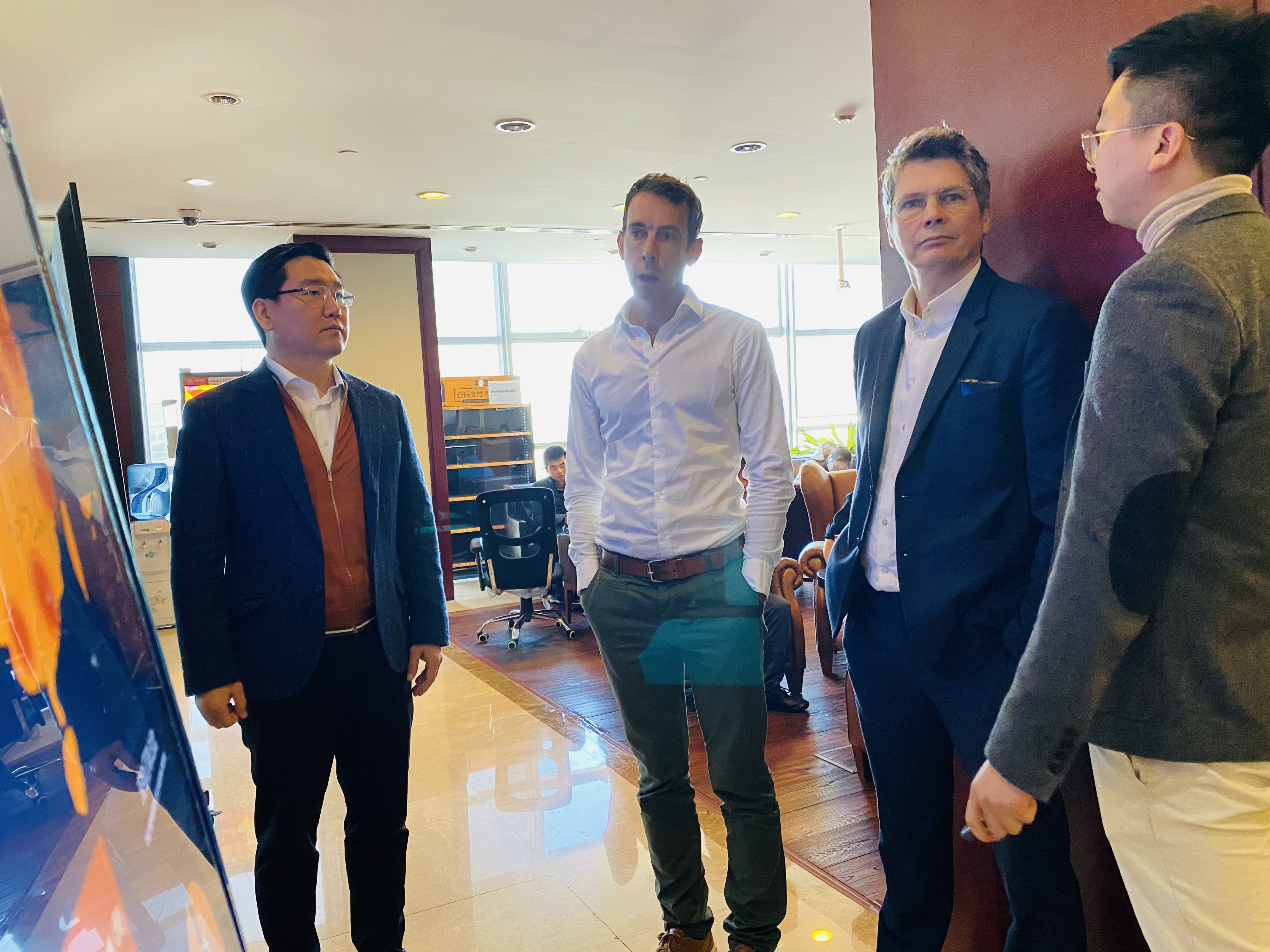 出席的人有: 法国电力总部 CIO&CTO Stephane Tauguy, 法国电力中国负责人 David Ferguson, 法电中国区块链负责人 博总, 戴总。。。