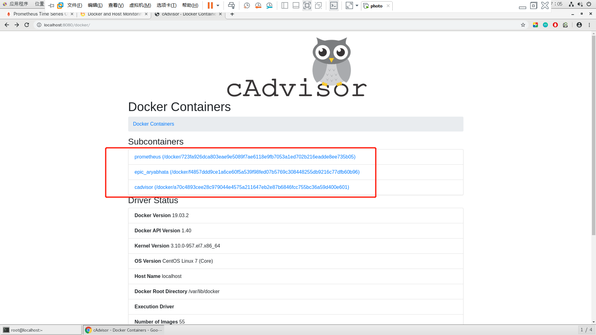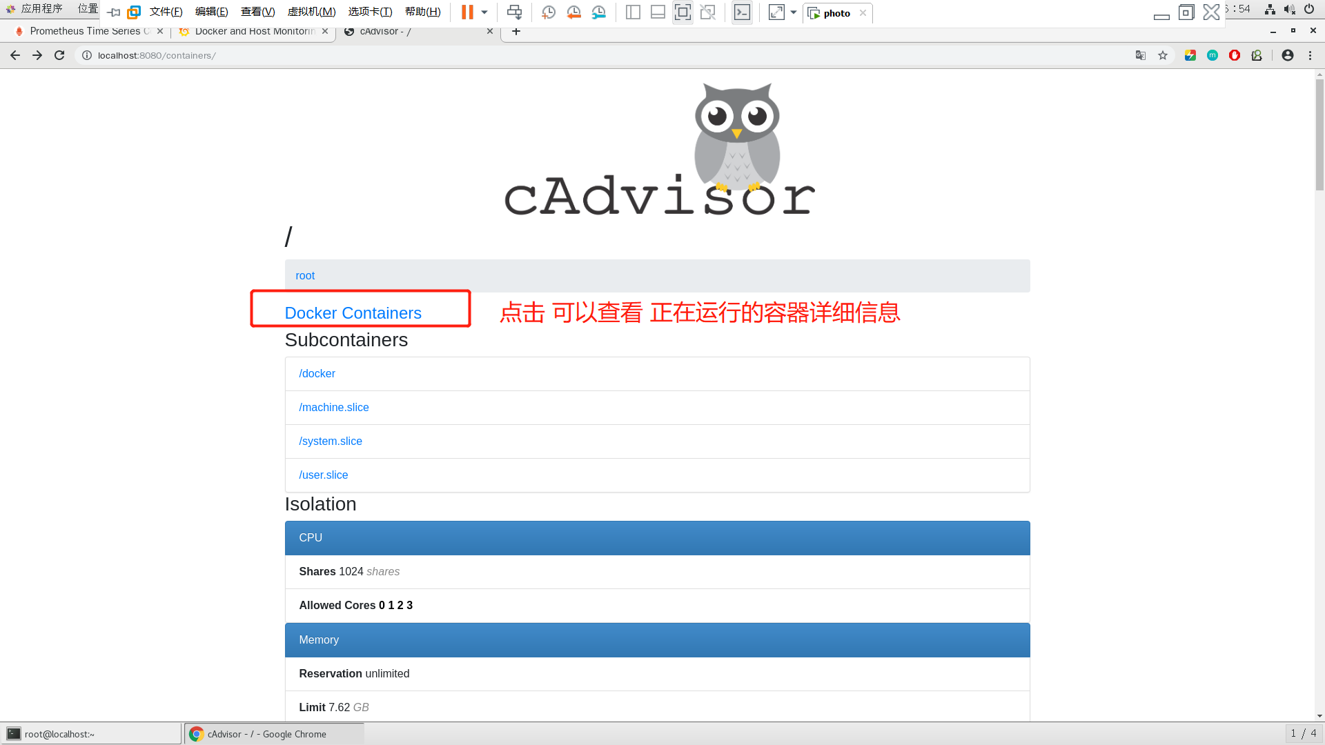 当启动成功后,使用 docker ps 你会看到 cadvisor 的启动情况