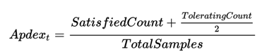 应用程序性能满意度的标准,范围在0-1之间,1表示达到所有用户均满意。是由APDEX公司推出的。计算公式: