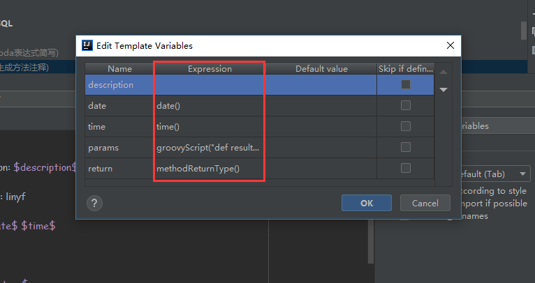 生成方法注释模板