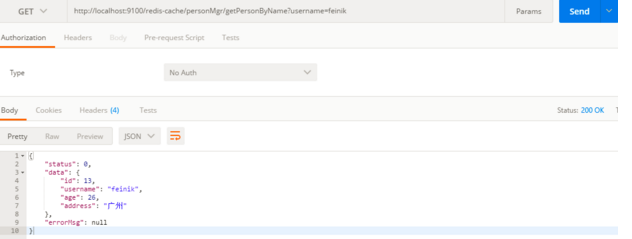 第二次查找用户:发现服务端并未打印任何数据库查询日志,可以知道第二次查询是从缓存中查询得到的数据。