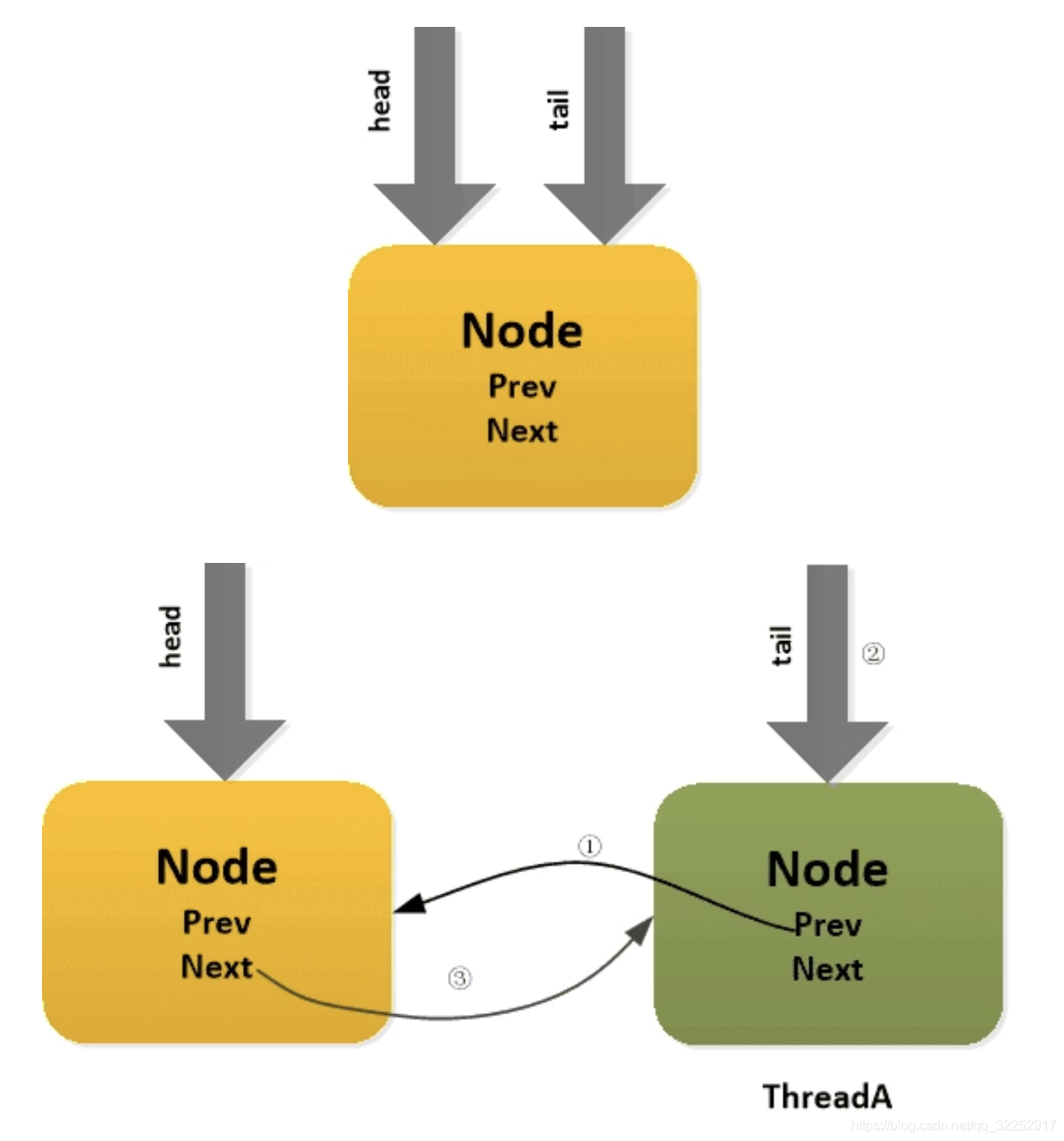 prev指针:用于在结点(线程)被取消时,让当前结点的前驱直接指向当前结点的后驱完成出队动作。