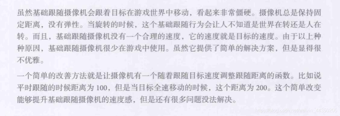 为摄像机创建观察矩阵,需要三个参数:眼睛的位置(摄像机的位置)、摄像机观察目标,以及摄像机的上方向量。在基础跟随摄像机中,眼的位置可以设置为目标的水平和垂直偏移。