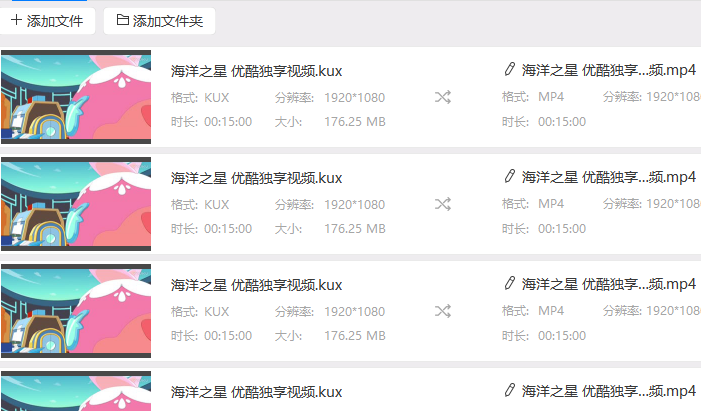 1、首先将下载的kux视频文件添加到迅捷视频转换器中,
