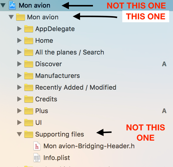 - If you created manually you have to go here under the "Build Settings" tab and then search for "Bridging Header. Here then you have the row "Objective-C Bridging Header" and you just have to put the the name of the folder he's in and his name. Like that : Your Project/Your Project-Bridging-Header.h. The name of the folder is defined as the screenshot shows. Doesn't matter if the project name (first arrow) and the first box (second arrow) are different, just take the right one.