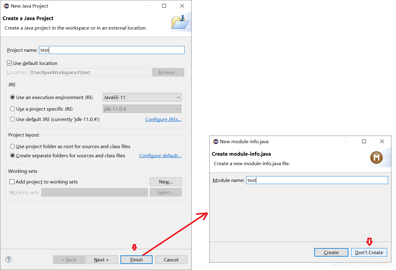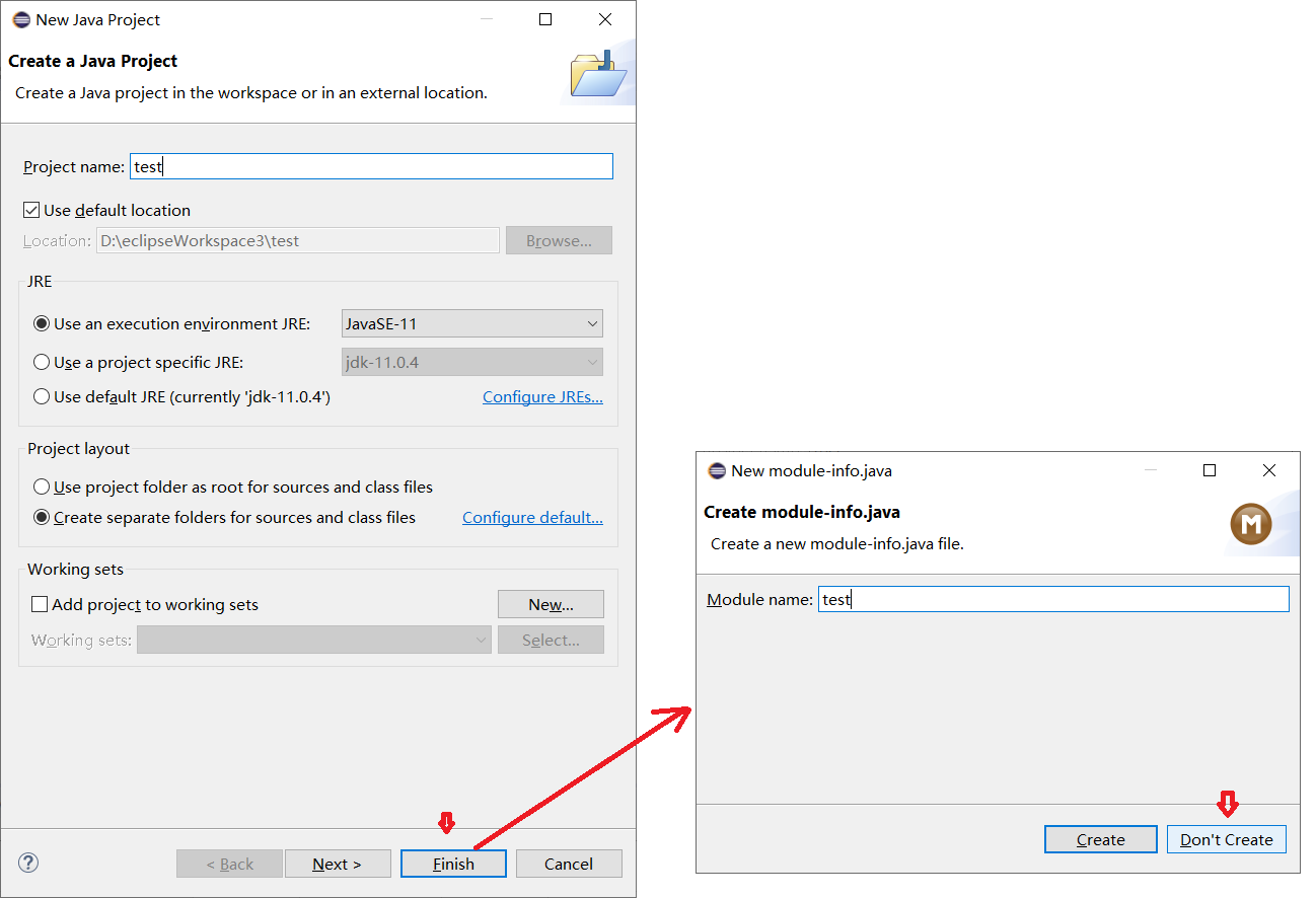 因为我们是建立一个简单的程序,不使用Module,所以单击Don’t Create
