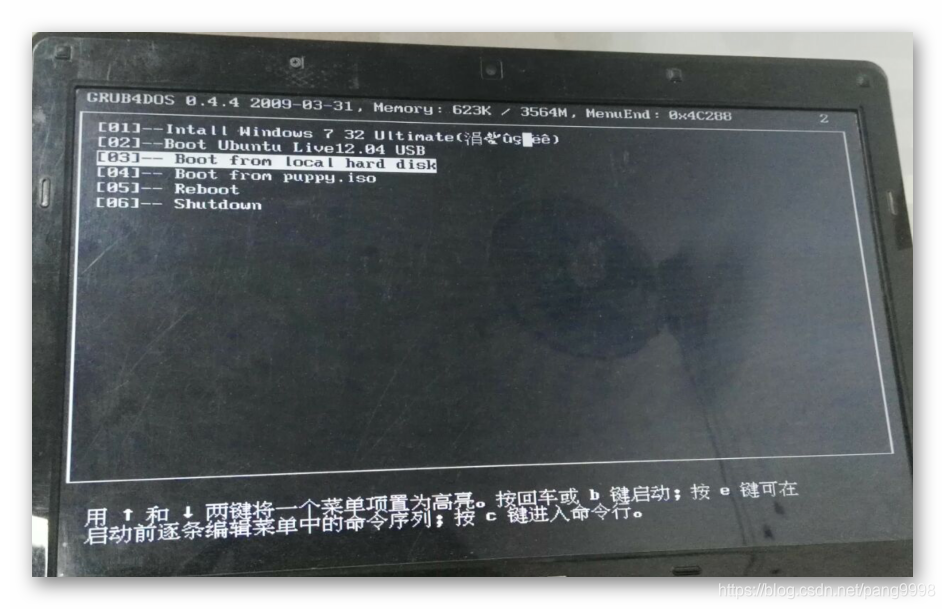 1)将grub4dos-0.4.4\chinese下面的所有文件复制到U盘根目录