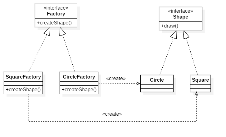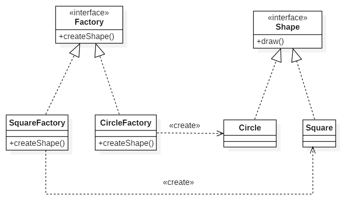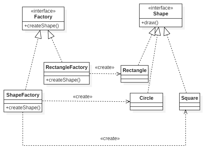 这样的多工厂方式可以用来进行扩展,例如,原来的工厂方法是这样的,现在又来了一个新的需求,需要“生产”三角形,(这个例子在源代码里改也非常简单,但是如果是一个很大的项目,大到很难理清关系,改动源代码是有风险的,所以可以使用符合开闭原则的方式进行扩展)