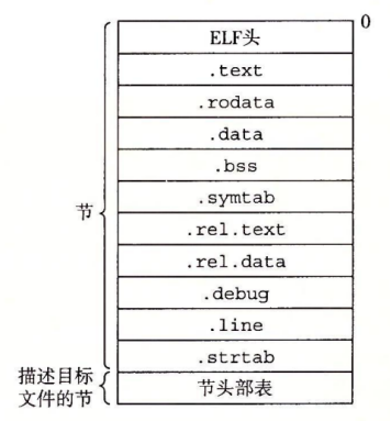 在ELF头和节头部表之间的都是节。一个典型的ELF可重定位目标文件包含下面几个节: