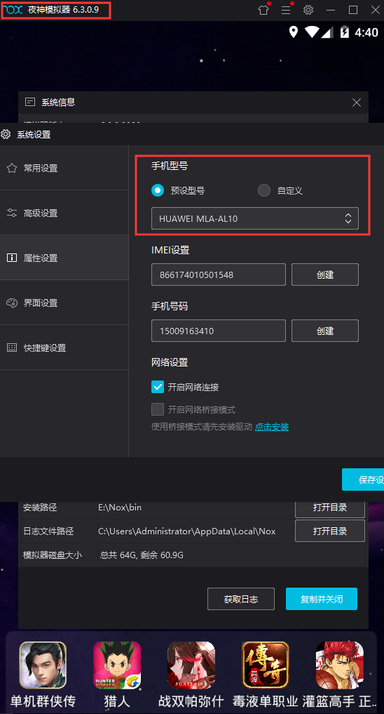 (2)、platformVersion就是Android版本号,可以通过查看手机设置得出,或者查看模拟器的设置(夜神模拟器的Android的版本号要在夜神多开器里查看)