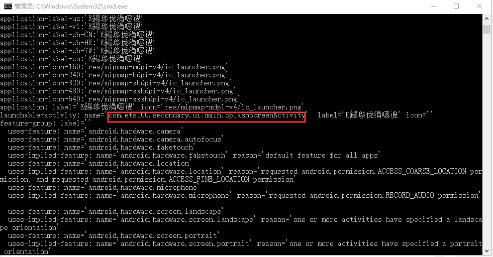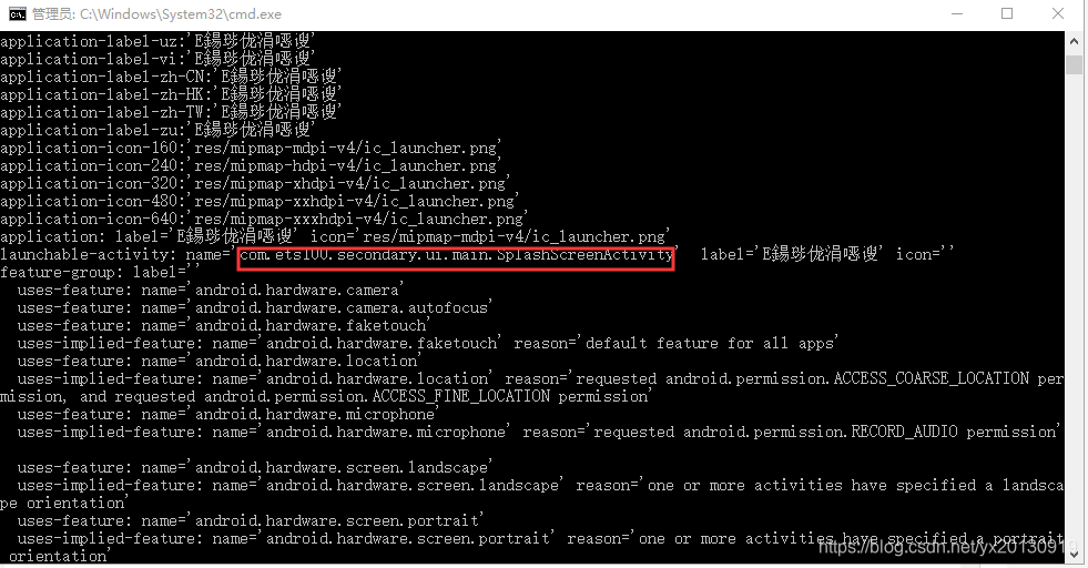 也可以解压Andriod测试包,在AndroidManifest.xml文件中查询manifest、activity字段得来