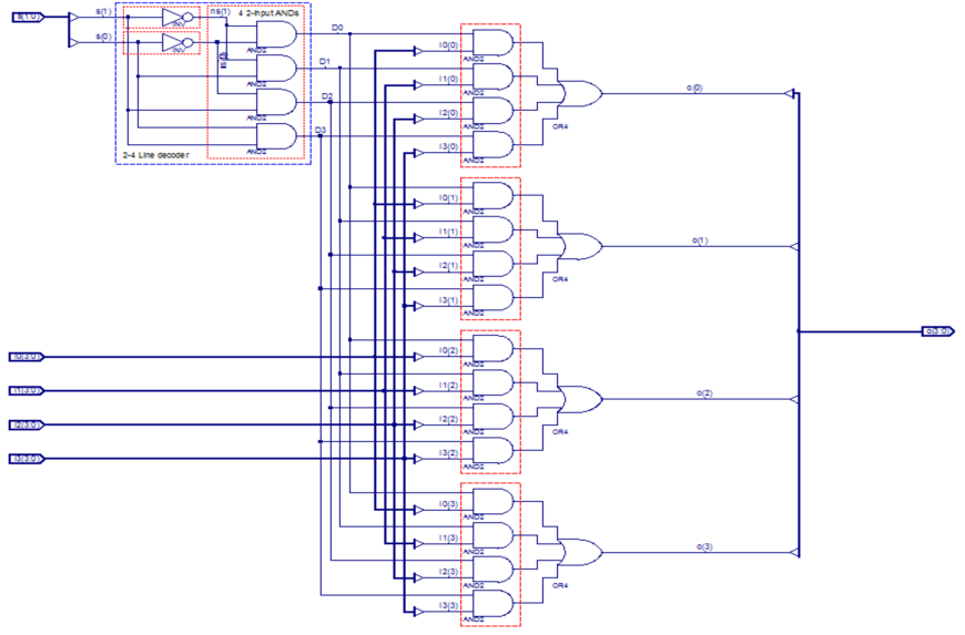 首先的一个4位四选一扩展MUX4to1b4开始让我迷惑了好久,后来仔细想想,其实是这样: