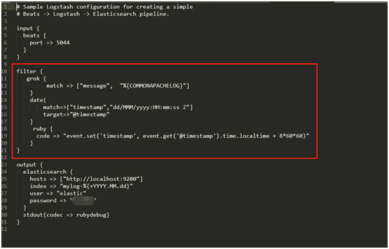 password => "密码" #之前elasticsearch初始化的用户和密码