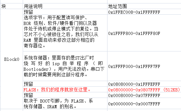 存储器Block0内部区域功能划分:Block0主要用于设计片内的FLASH,