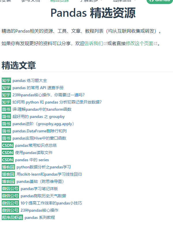 想看pandas官方文档的可以点击这个链接 https://www.pypandas.cn/ 中文哦