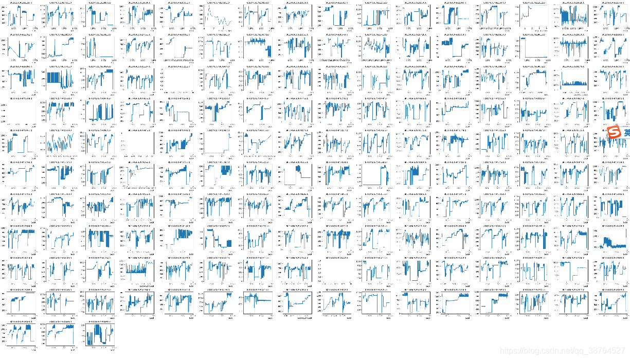 根据sn分组,x=time, y=distance_1,显示为12*16的子图,