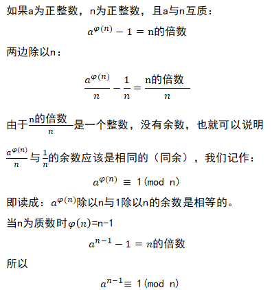 例如:7的4次方 mod 12 = 7×7×7×7 mod 12 = ((7×7 mod 12)×(7×7 mod 12)) mod 12 =((49 mod 12) ×(49 mod 12)) mod 12 =(1×1) mod 12 = 1 mod 12 =1