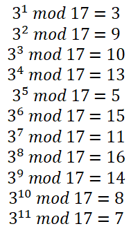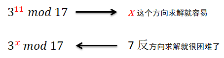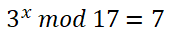 即使数字很大,求对数也并不是很难,但是加入mod运算,mod运算中的对数称为离散对数,例如: