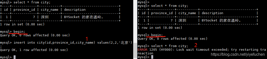 然后会话2把所有数据都的city_name都更新成了”深圳“,然后查询,此时看到了会话1更新和新增的数据(?)