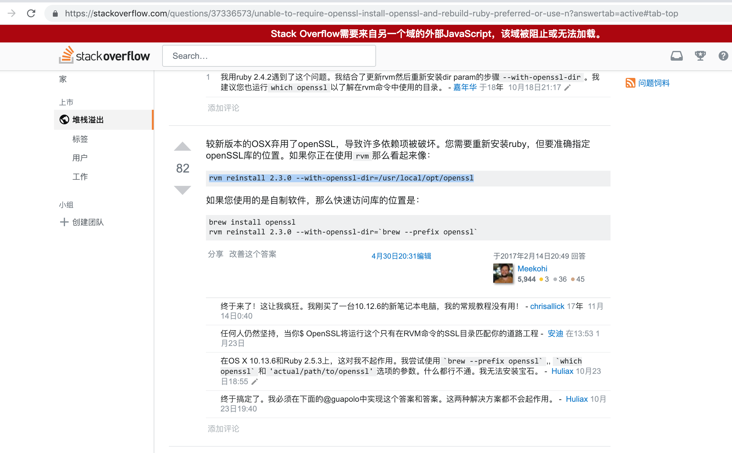 >>编译的 Ruby 2.3.0 缺少 openssl 支持的解决方法 (搜索问题)地址:https://ruby-china.org/topics/28575/ 地址方法没有试验