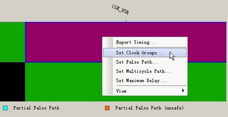 可以通过设置时钟组(clock group)或者设置假路径(false path)处理跨时钟域路径。如图10所示,在clock interaction中红色区域右击,选择Set Clock Groups或者Set False Path,