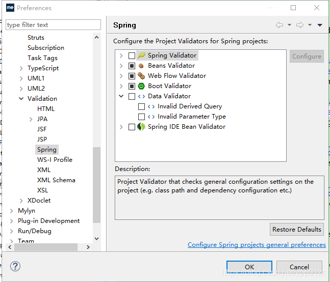 Eclipse:window-->preference-->Spring -> Project Validators -> Data Validator -> Invalid Derived Query