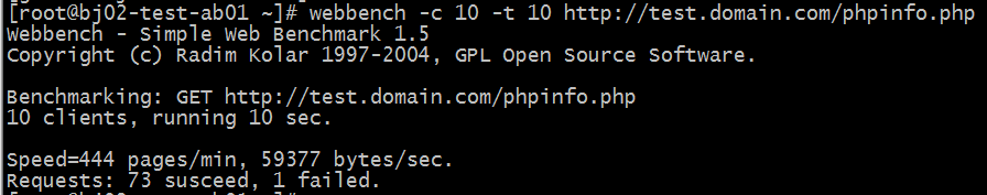 webbench -c 10 -t 10 http://test.domain.com/phpinfo.php