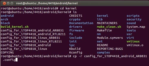 内核需要配置缺省文件,进入解压出来的源码目录 android,然后进入 kernel 目录,使用