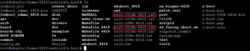 如上图所示,如果是 1G 核心板,则使用“cp nsih-1G16b-4418.txt nsih.txt”命令,用