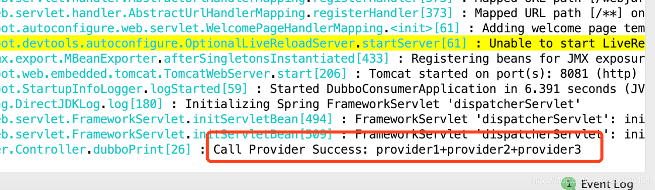 String fromProvider= dubboPrintConsumer.getPrintService1().print("consumer1,consumer3");