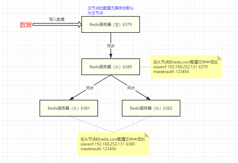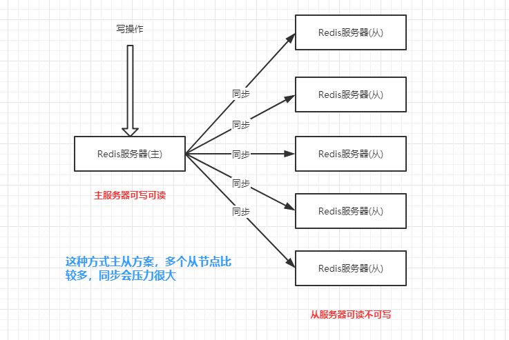 单个Redis如果因为某种原因宕机的话,可能会导致Redis服务不可用,可以使用主从复制实现一主多从,主节点负责写的操作,从节点负责读的操作,主节点会定期将数据同步到从节点中,保证数据一致性的问题。