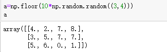 a=np.floor(10*np.random.random((3,4))) floor向下取整